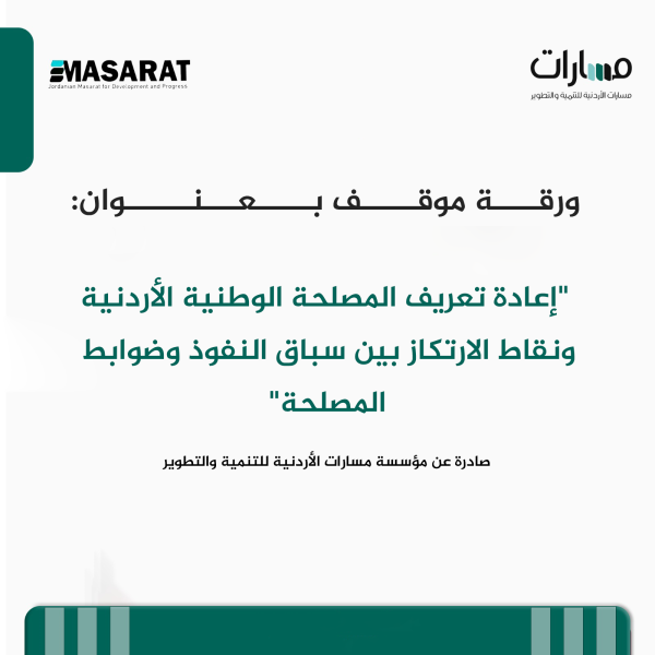 ورقة موقف بعنوان: "إعادة تعريف المصلحة الوطنية الأردنية ونقاط الارتكاز بين سباق النفوذ وضوابط المصلحة" صادرة عن مؤسسة مسارات الأردنية للتنمية والتطوير