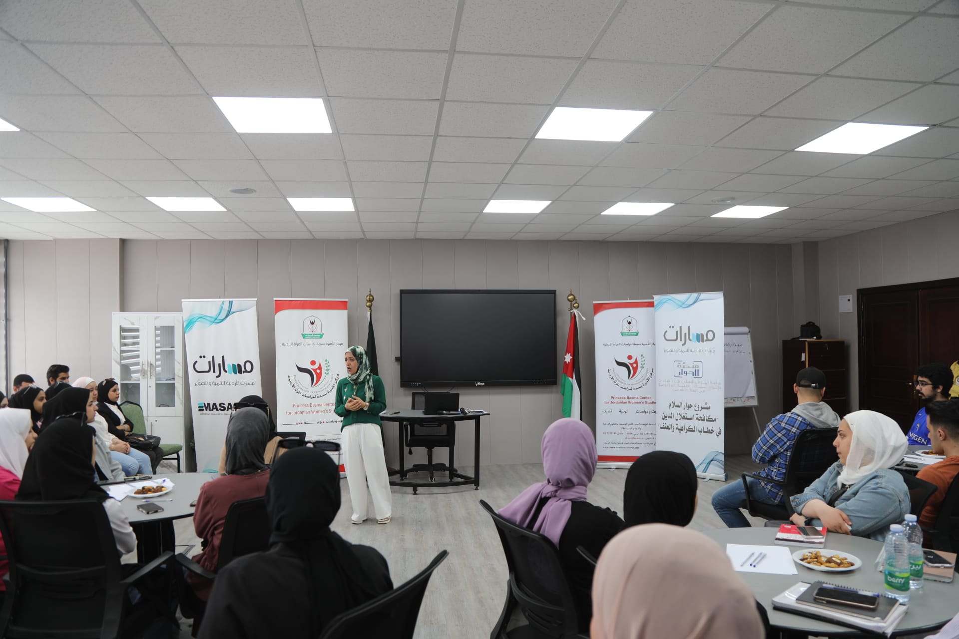 جلسة تدريبية في جامعة البلقاء التطبيقية - السلط حول "العمل الحزبي والنظام السياسي للدولة الأردنية وقانون الانتخاب والاعلام السياسي والظهور الاعلامي" ضمن مشروع "تدريب السيدات الاكاديميات على العمل الحزبي في الجامعات" الذي تنفذه مؤسسة مسارات الاردنية بالتعاون مع صندوق الملك عبدالله الثاني للتنمية، حيث تستهدف الدورة التدريبية والتي تنفذ على مدار يومين مجموعة من الطالبات من مختلف الكليات من جامعة البلقاء التطبيقية - السلط.