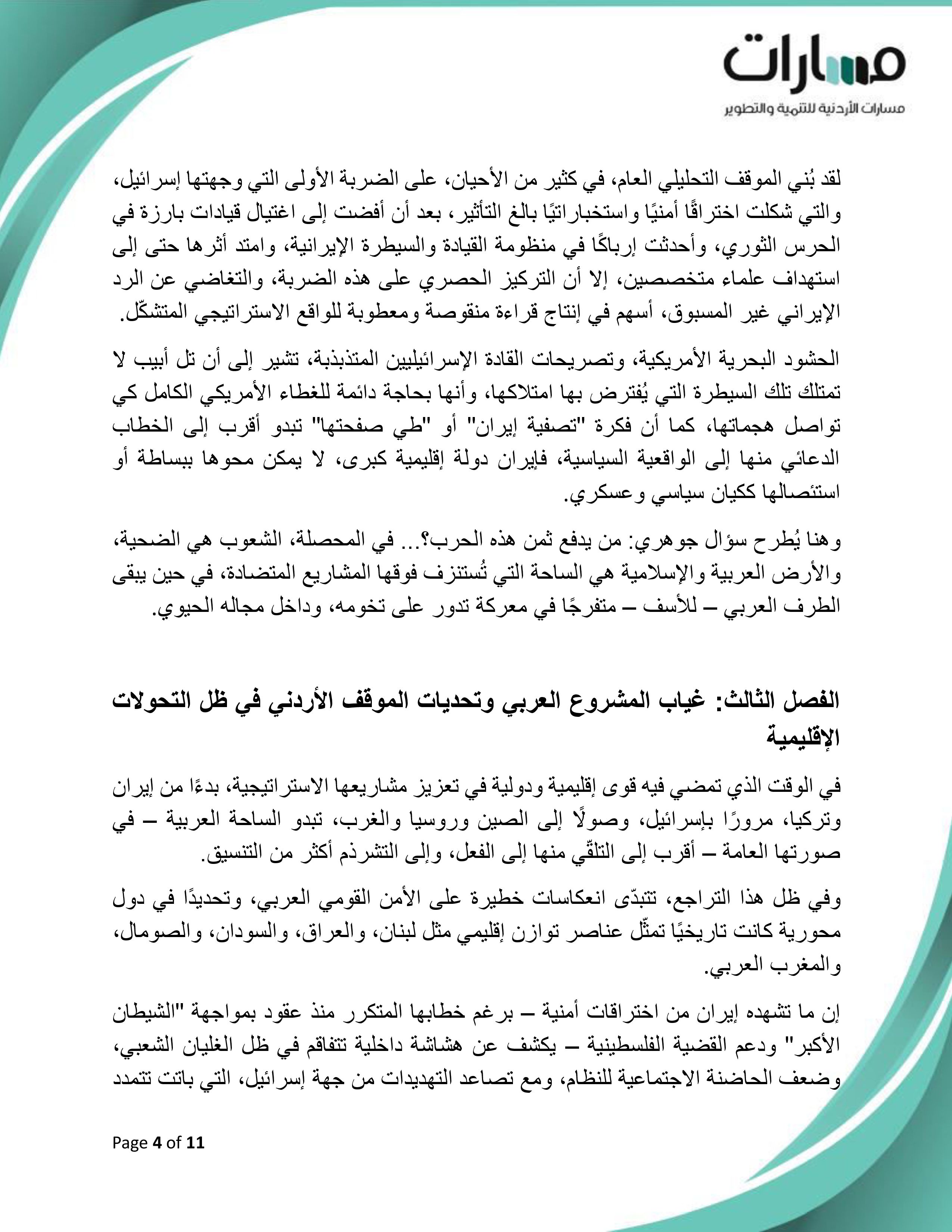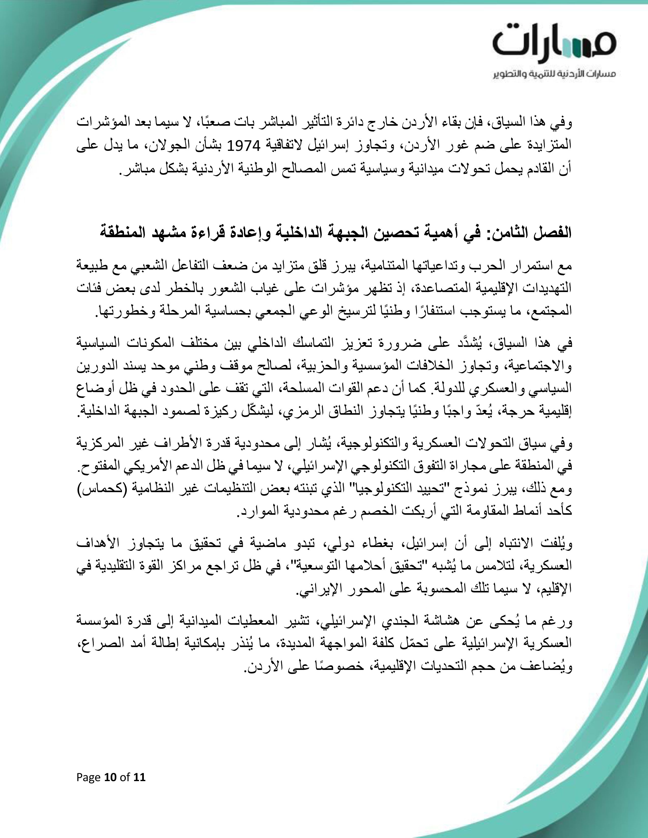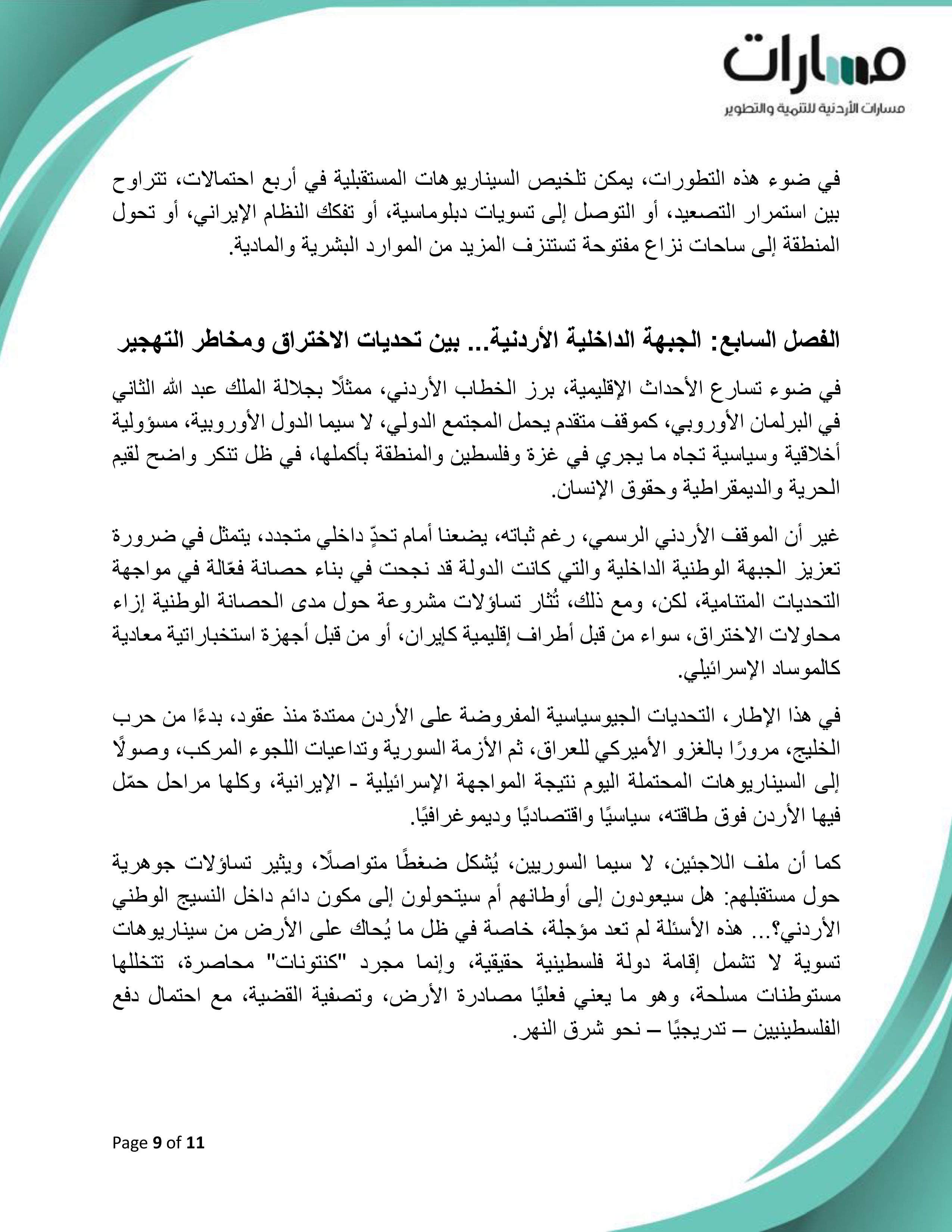 ورقة موقف بعنوان: "الأردن وتعريف الخطر.. محددات التحالفات واستحقاقات الداخل"