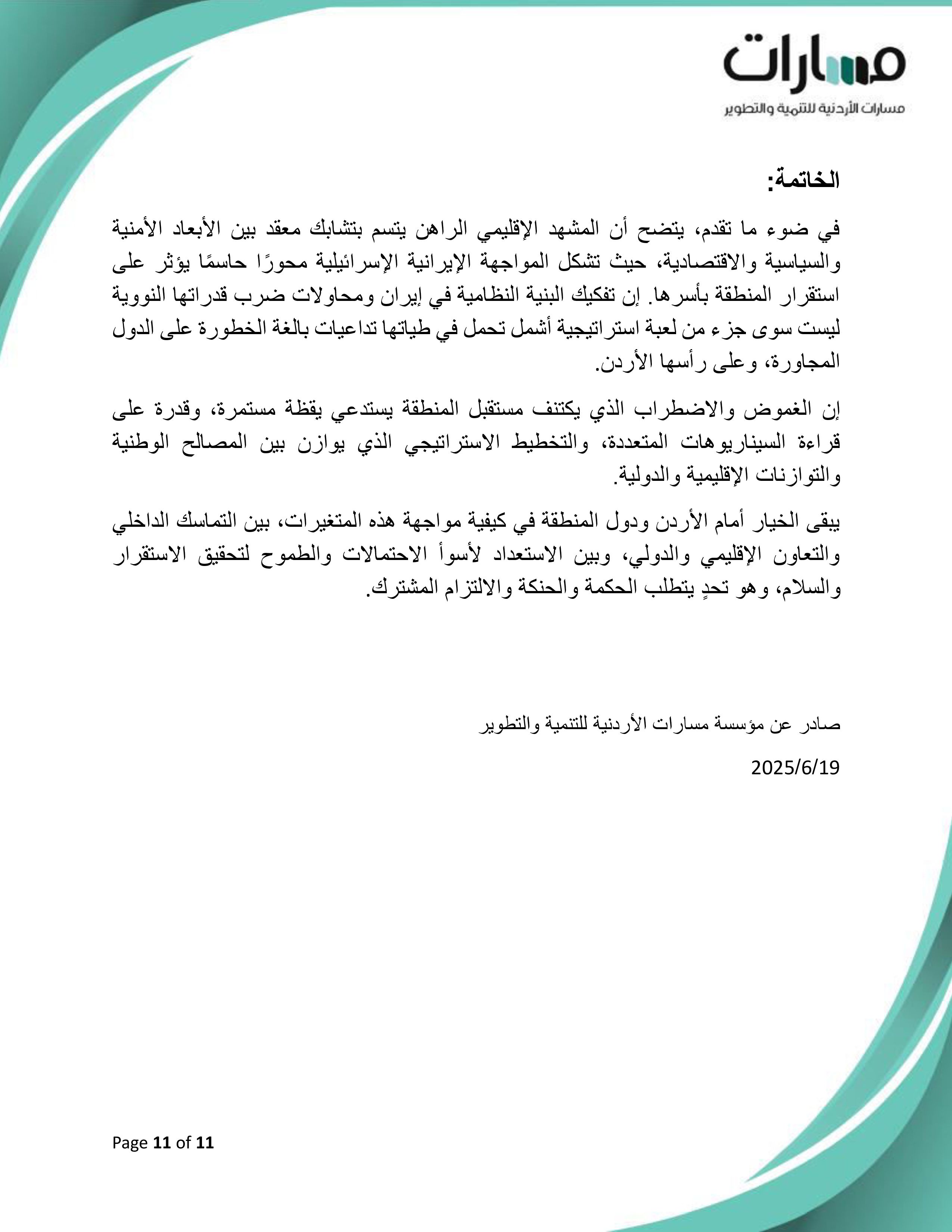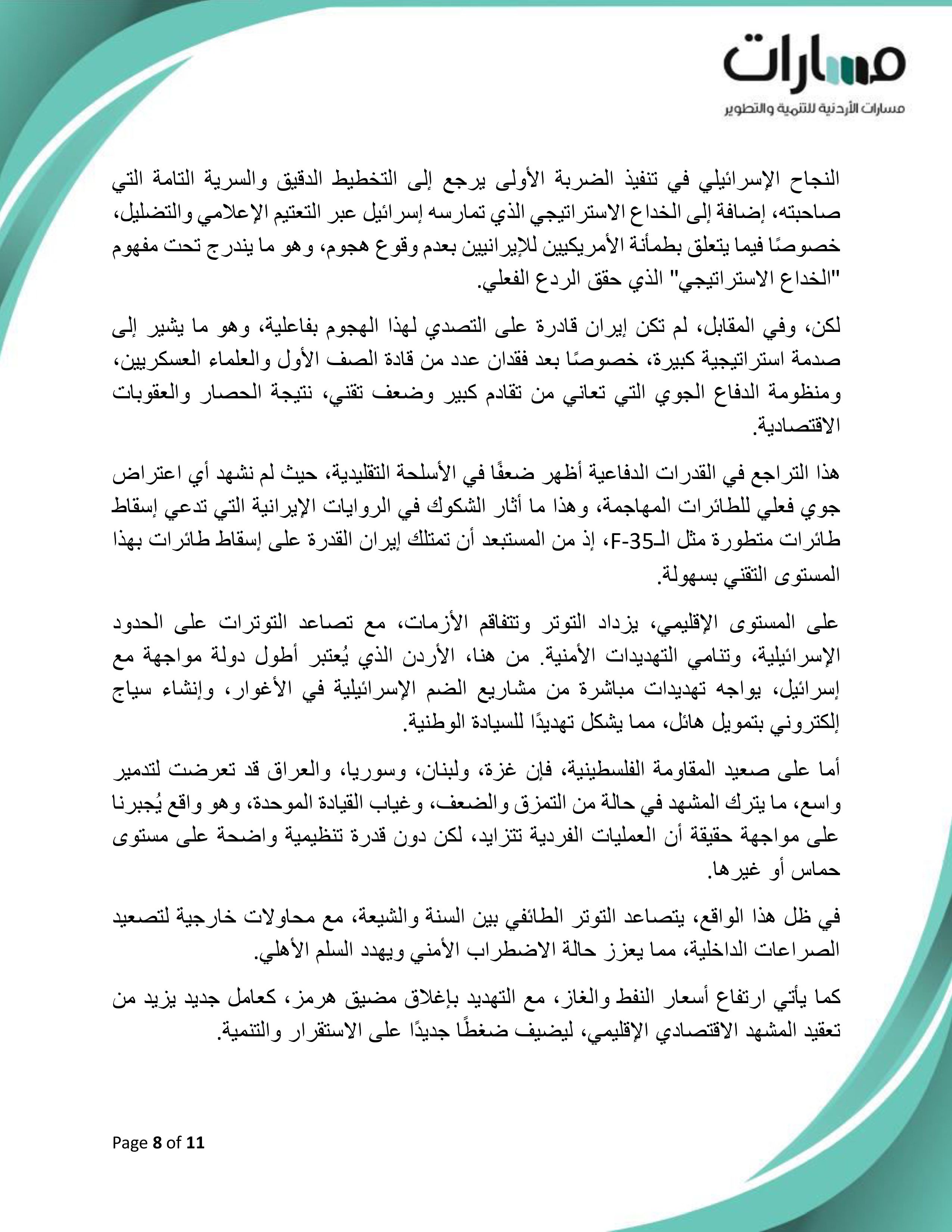 ورقة موقف بعنوان: "معادلات التحوط والبناء في الأردن... قراءة موضوعية لتحديات الشرق الأوسط المتجددة"