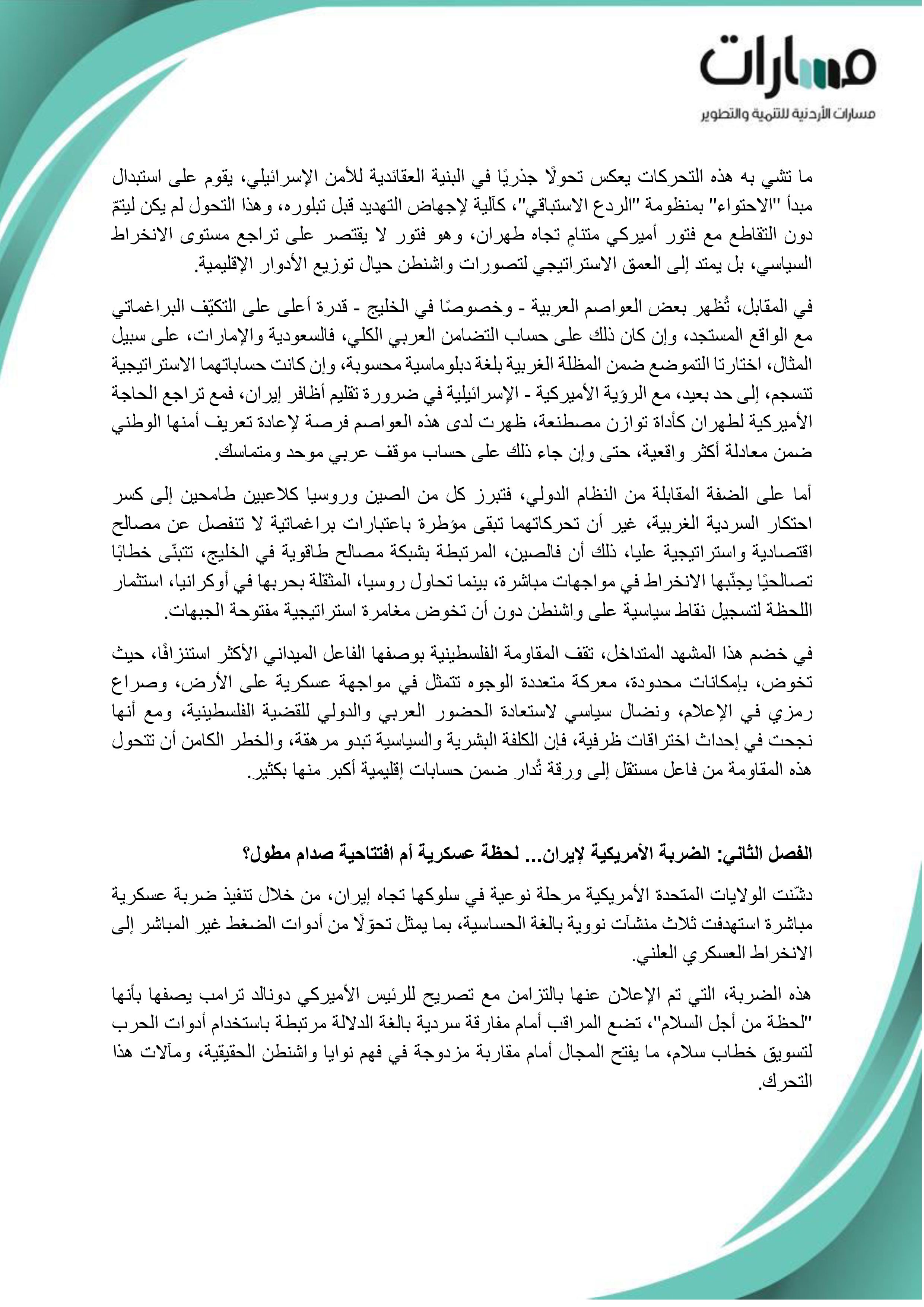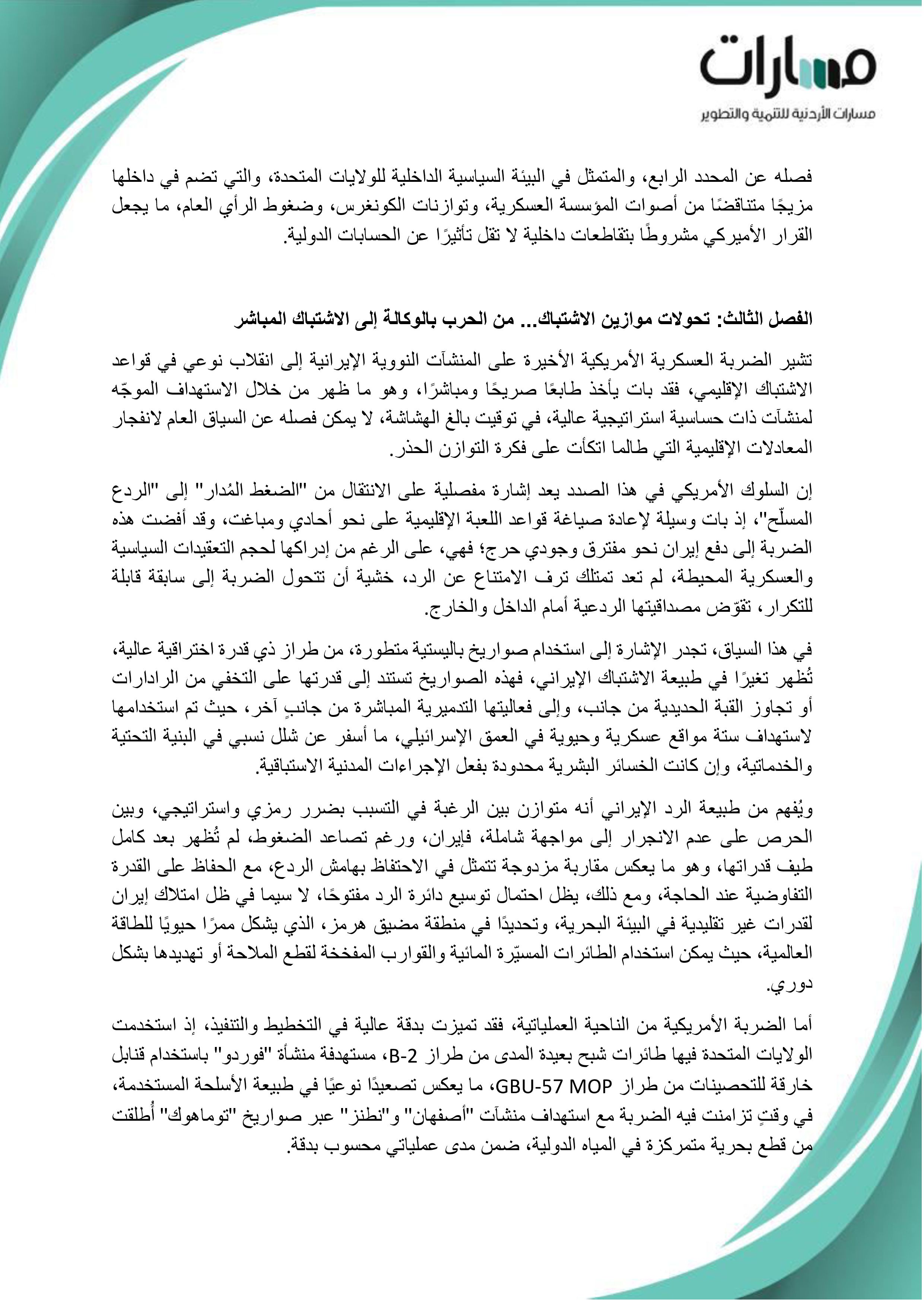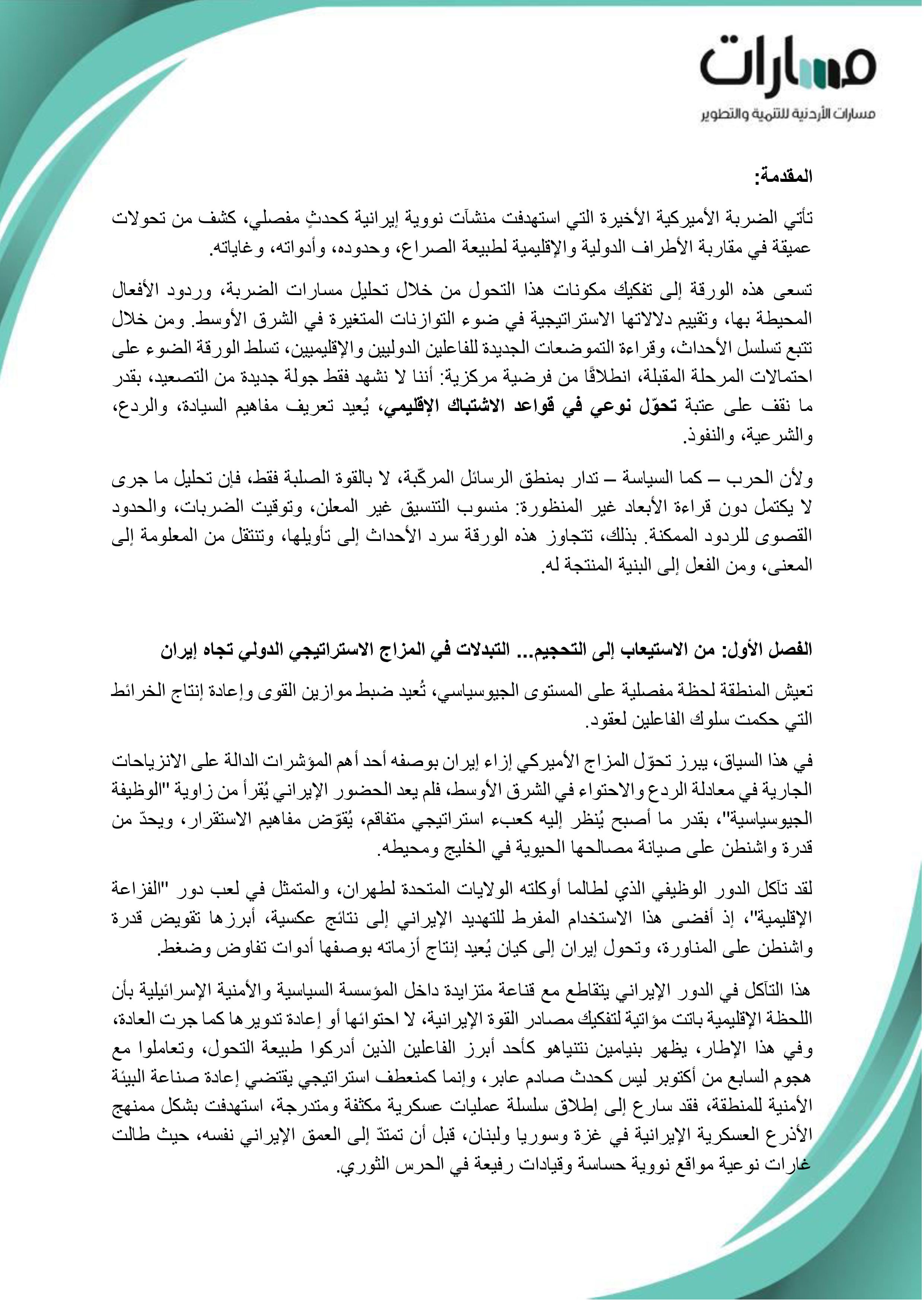 ورقة موقف بعنوان: “الضربة الأميركية لإيران وتحولات الاشتباك في الشرق الأوسط”