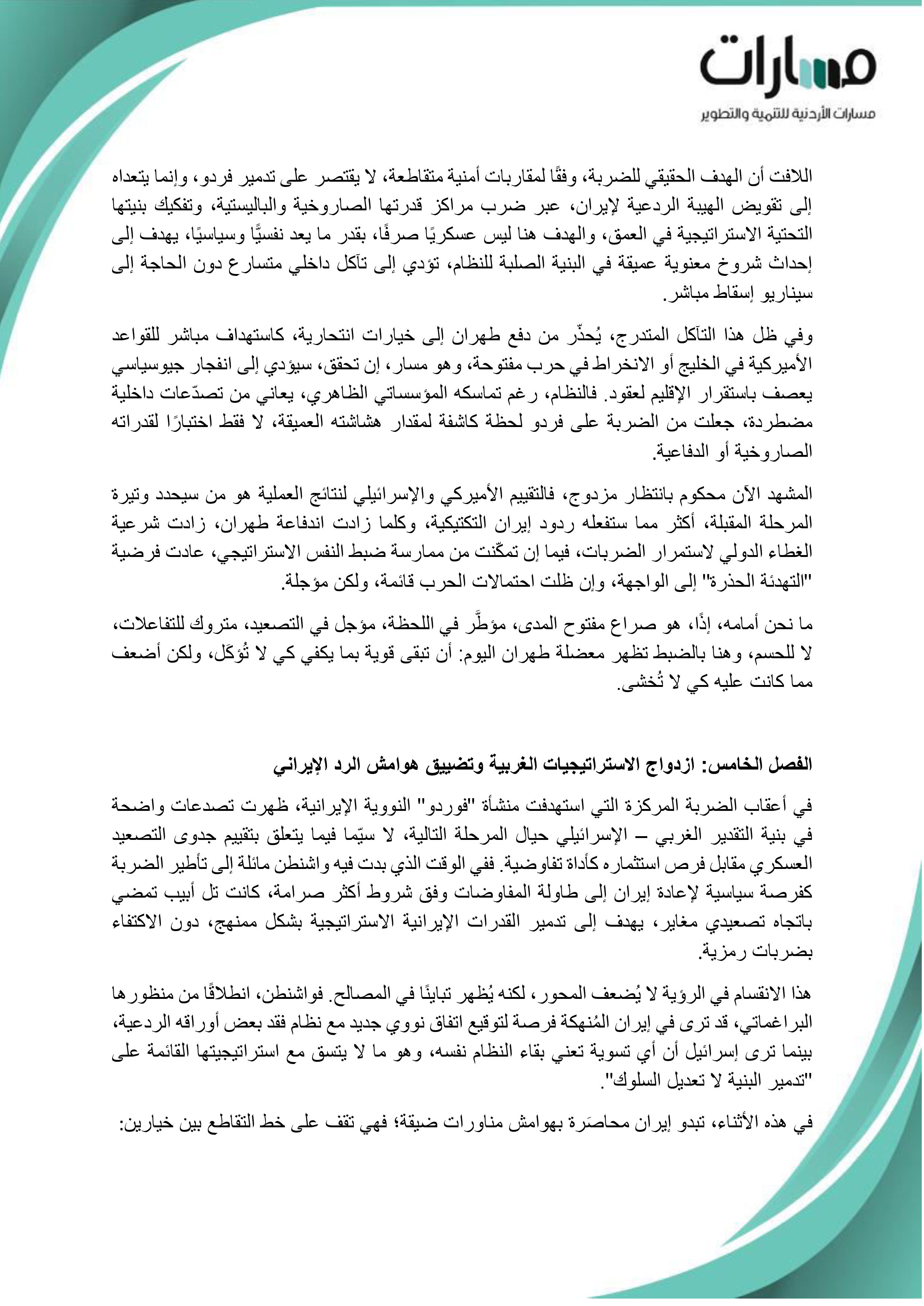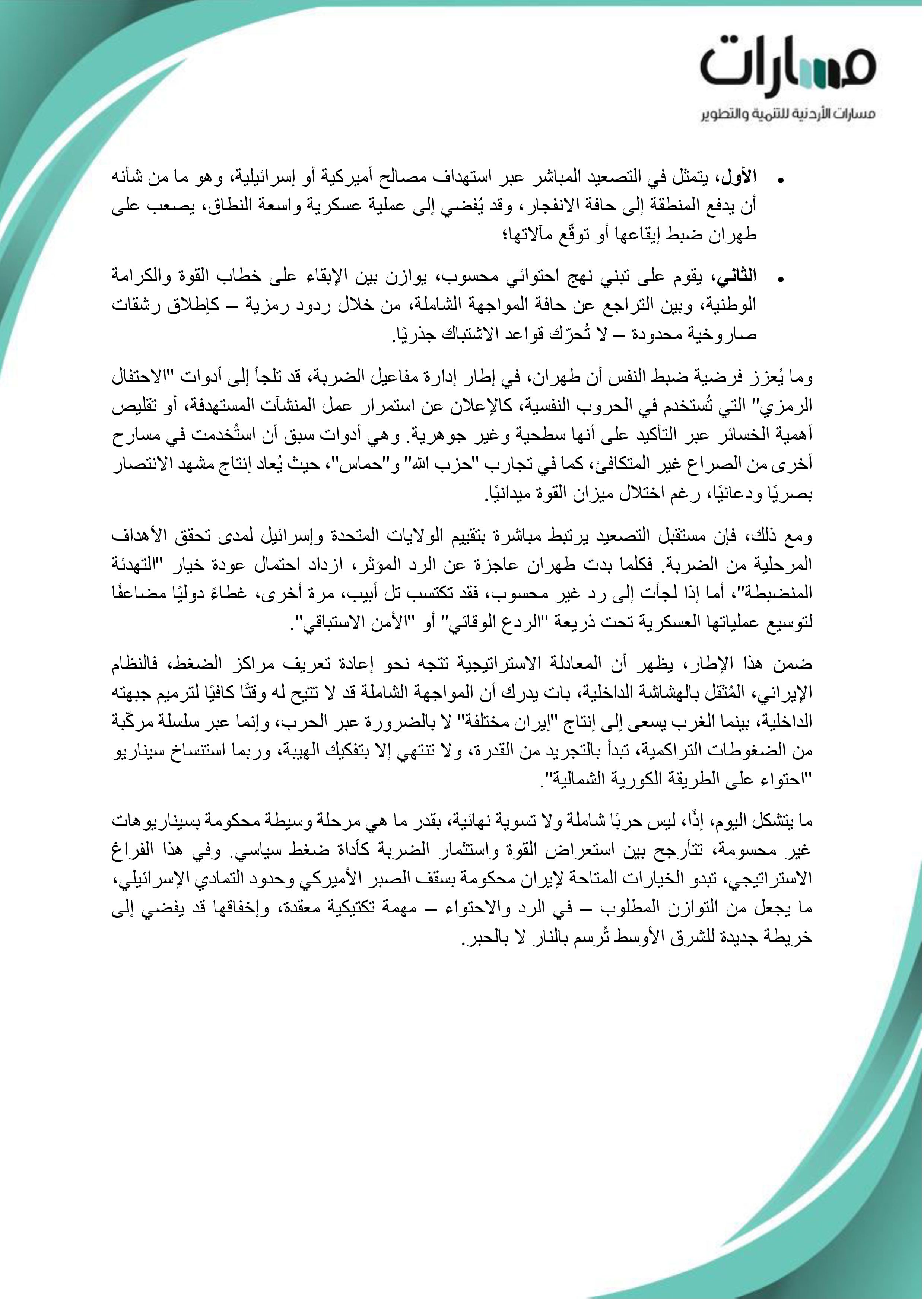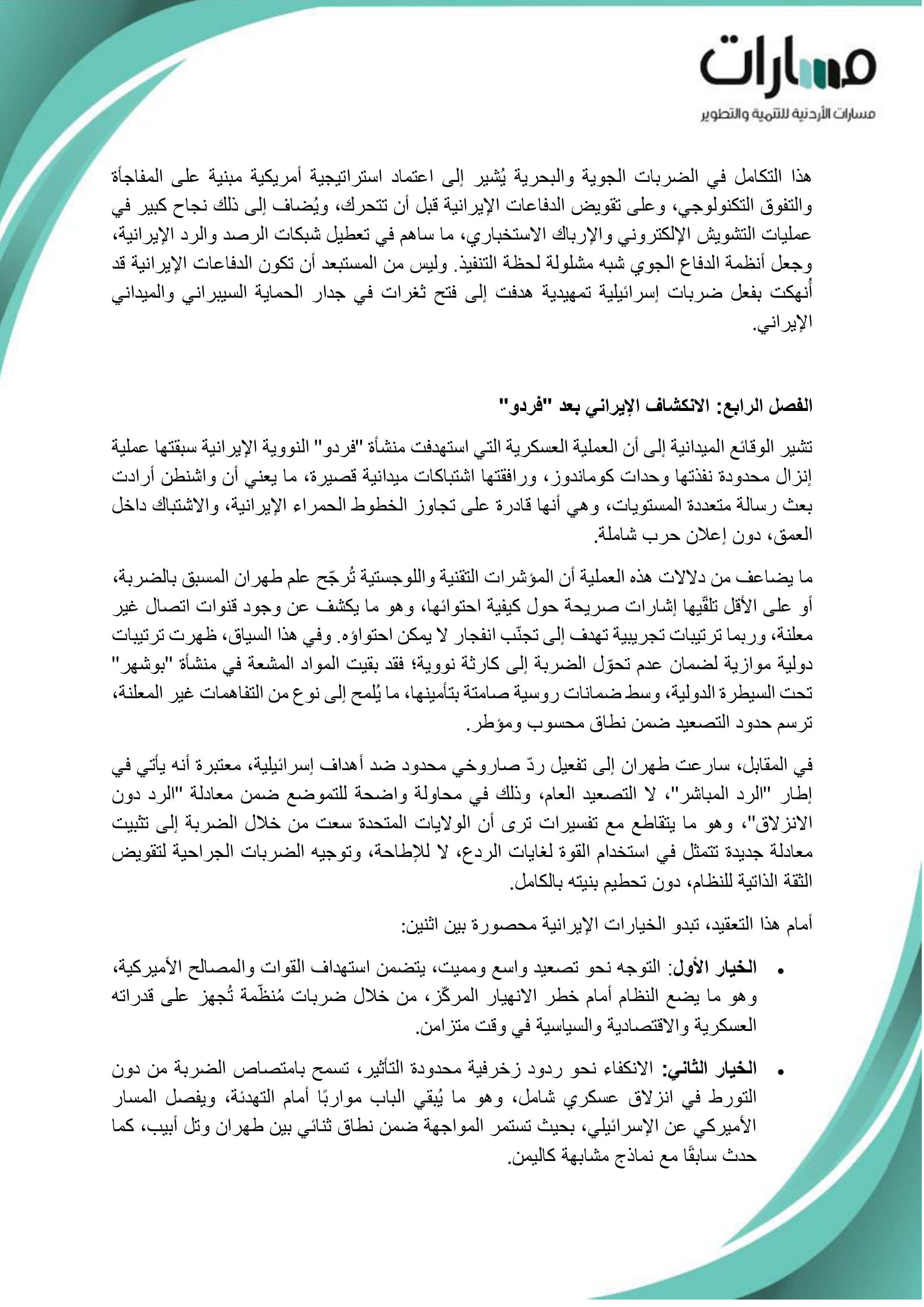 ورقة موقف بعنوان: “الضربة الأميركية لإيران وتحولات الاشتباك في الشرق الأوسط”