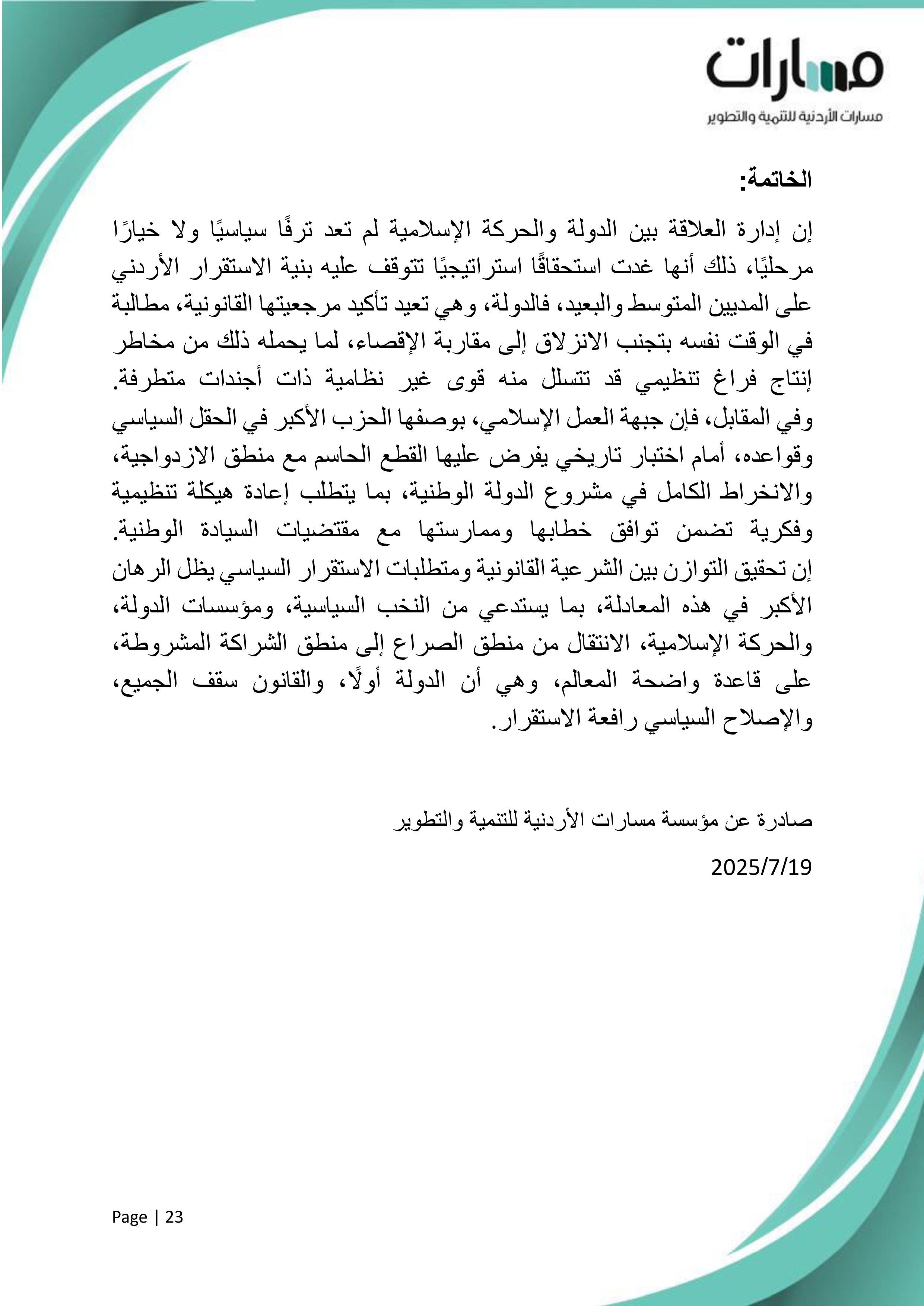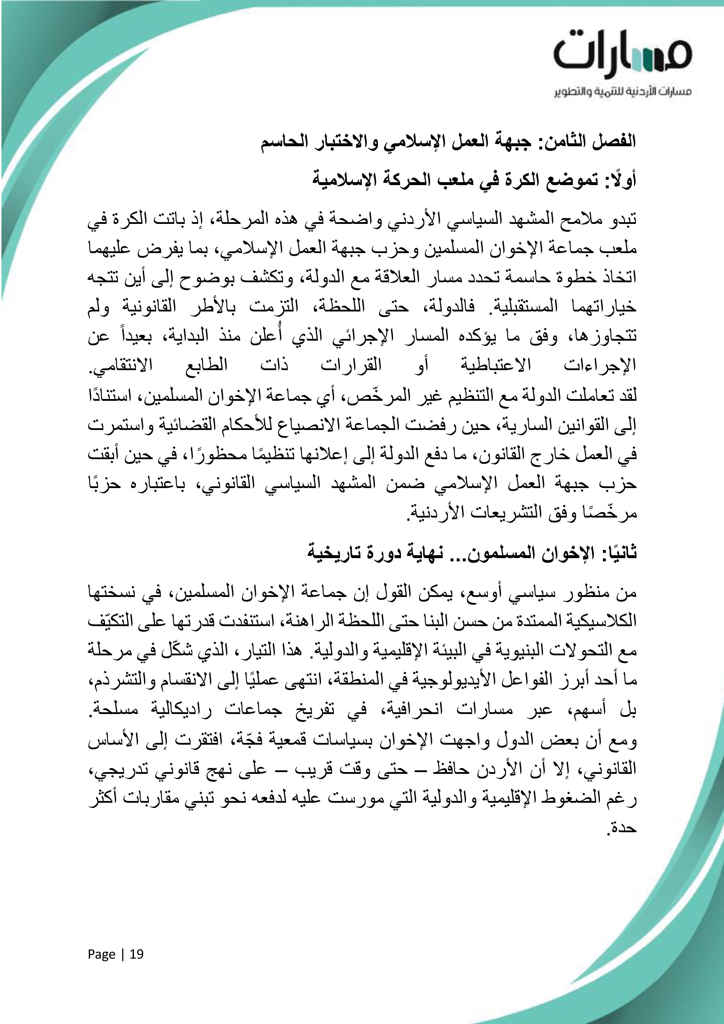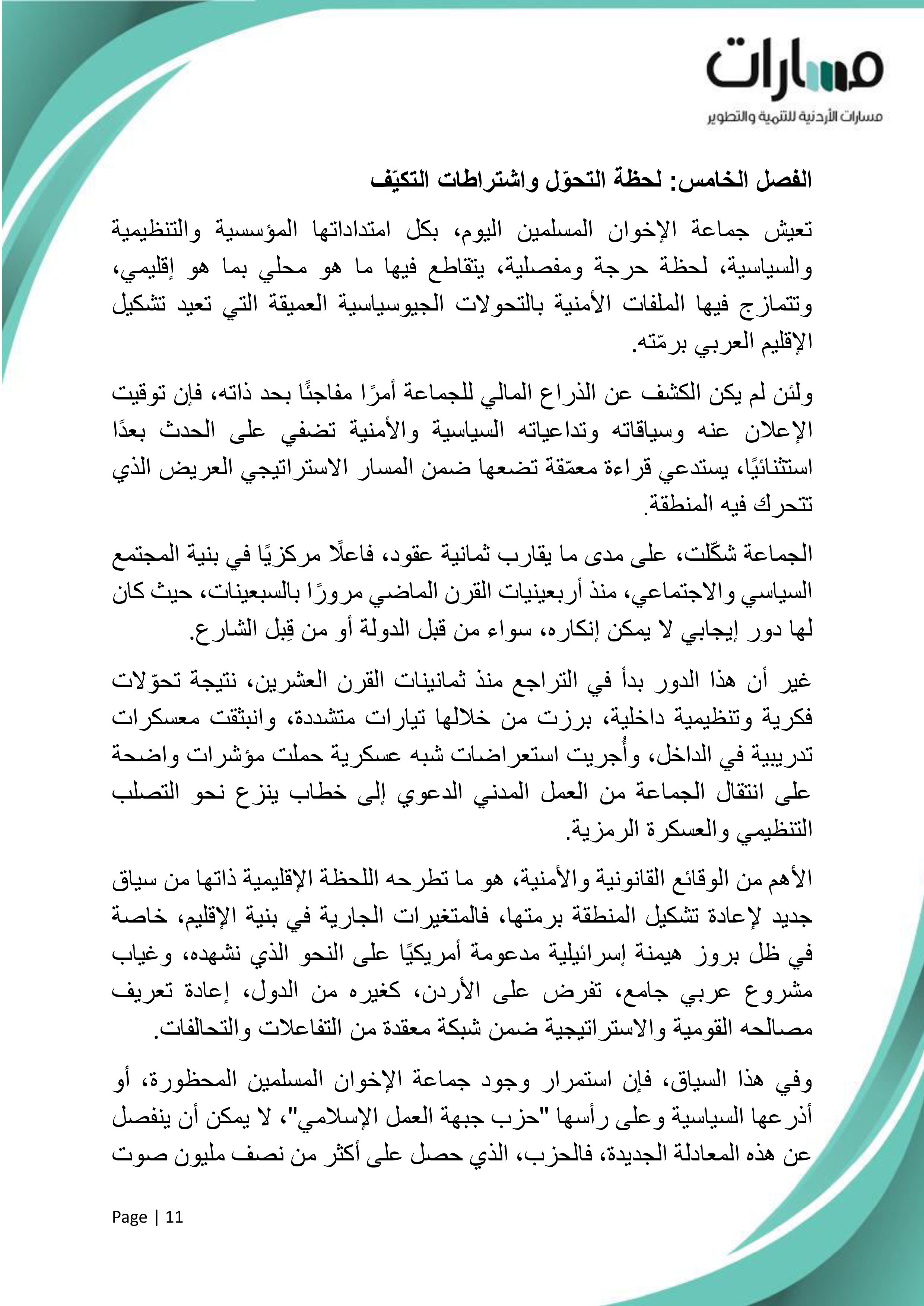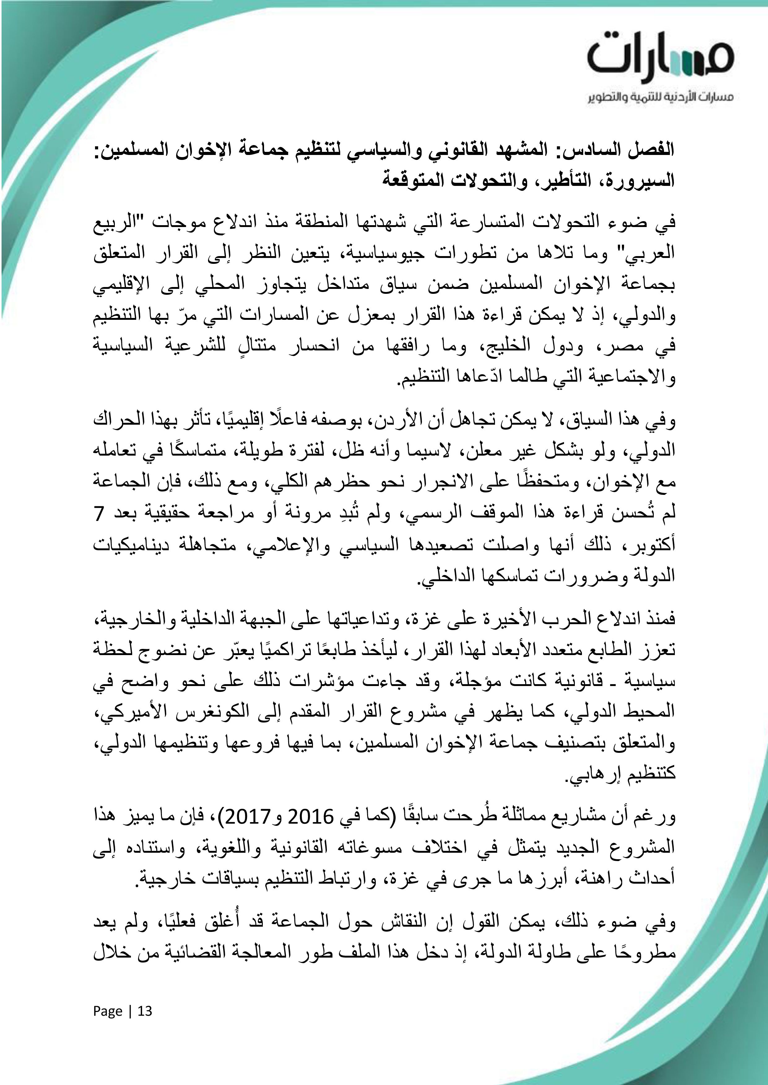 ورقة موقف بعنوان: "جماعة الإخوان المحظورة في الأردن بعد قرار الحل: سيناريوهات التكيف وخيارات الدولة"