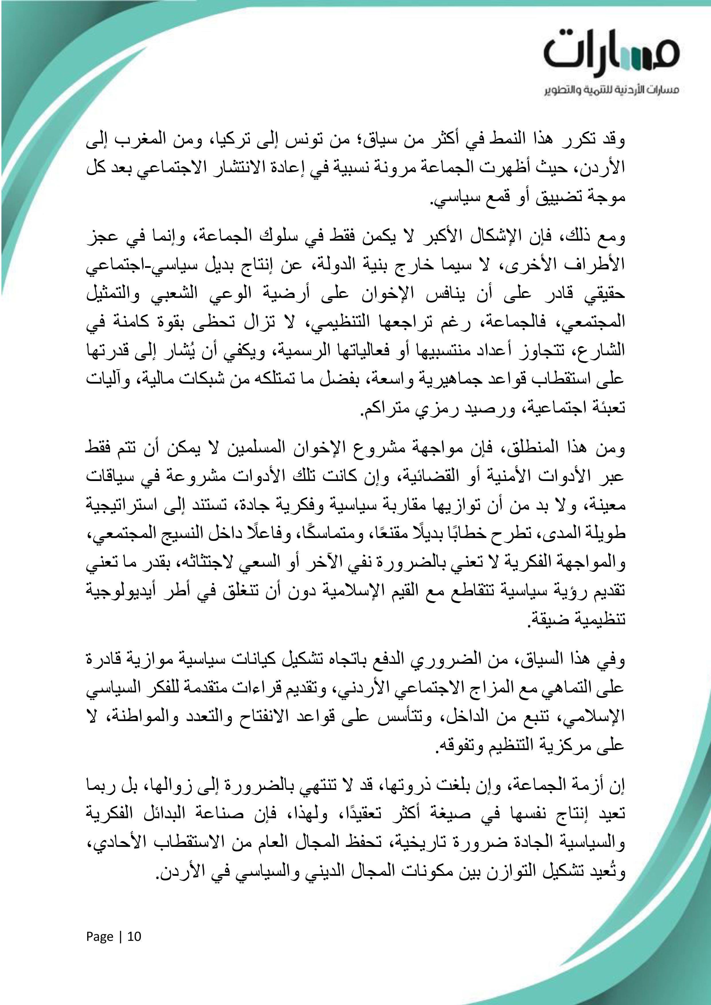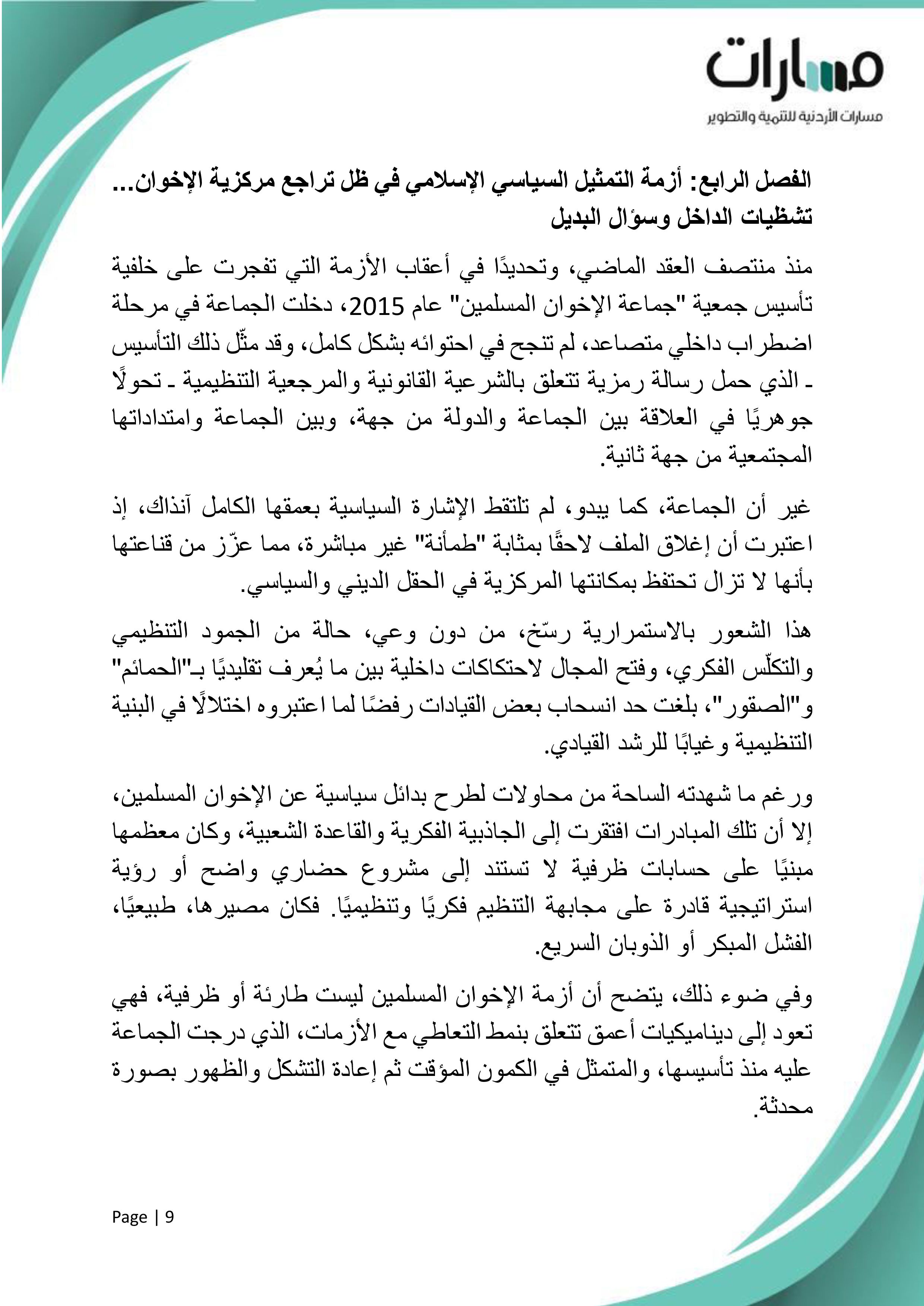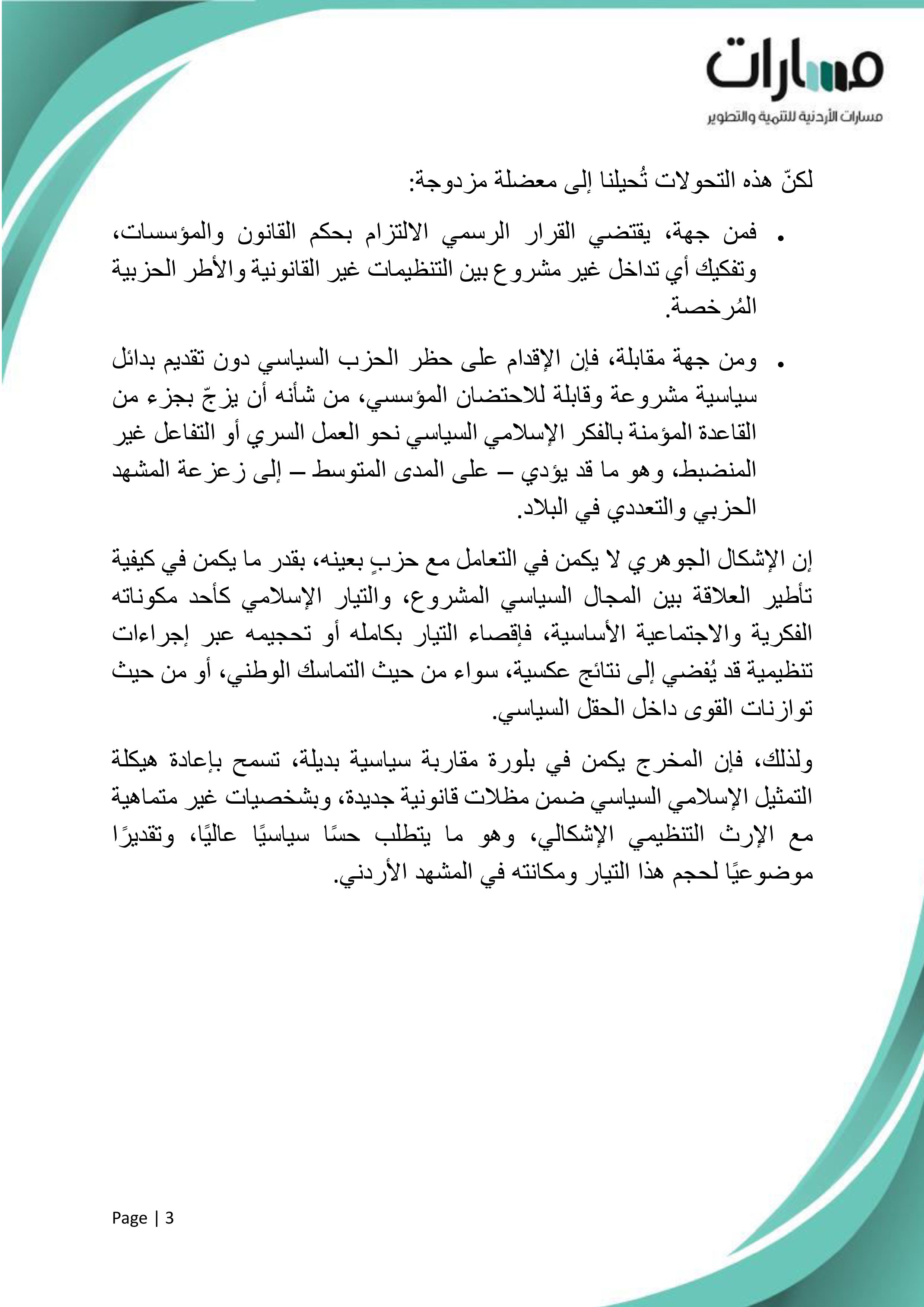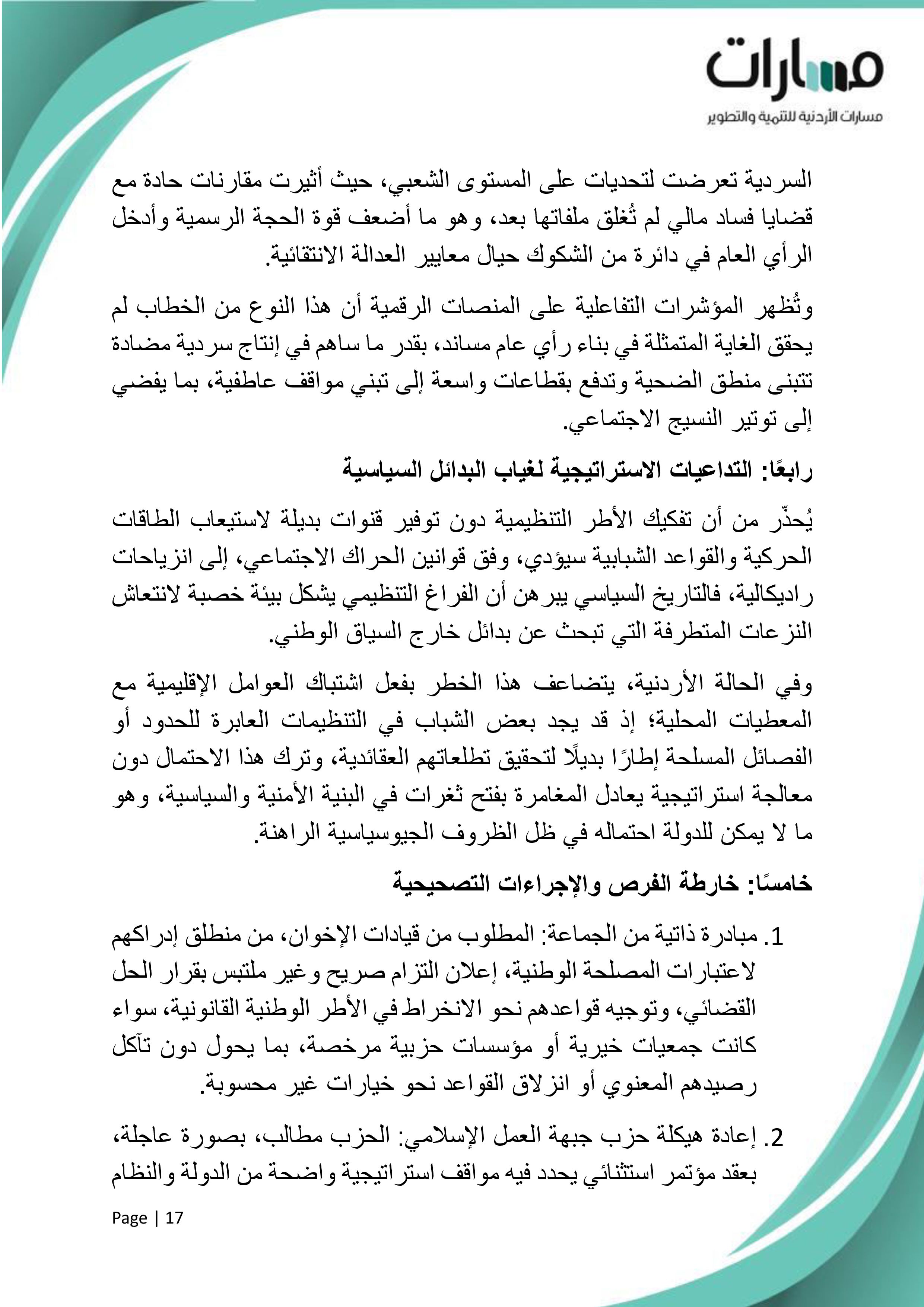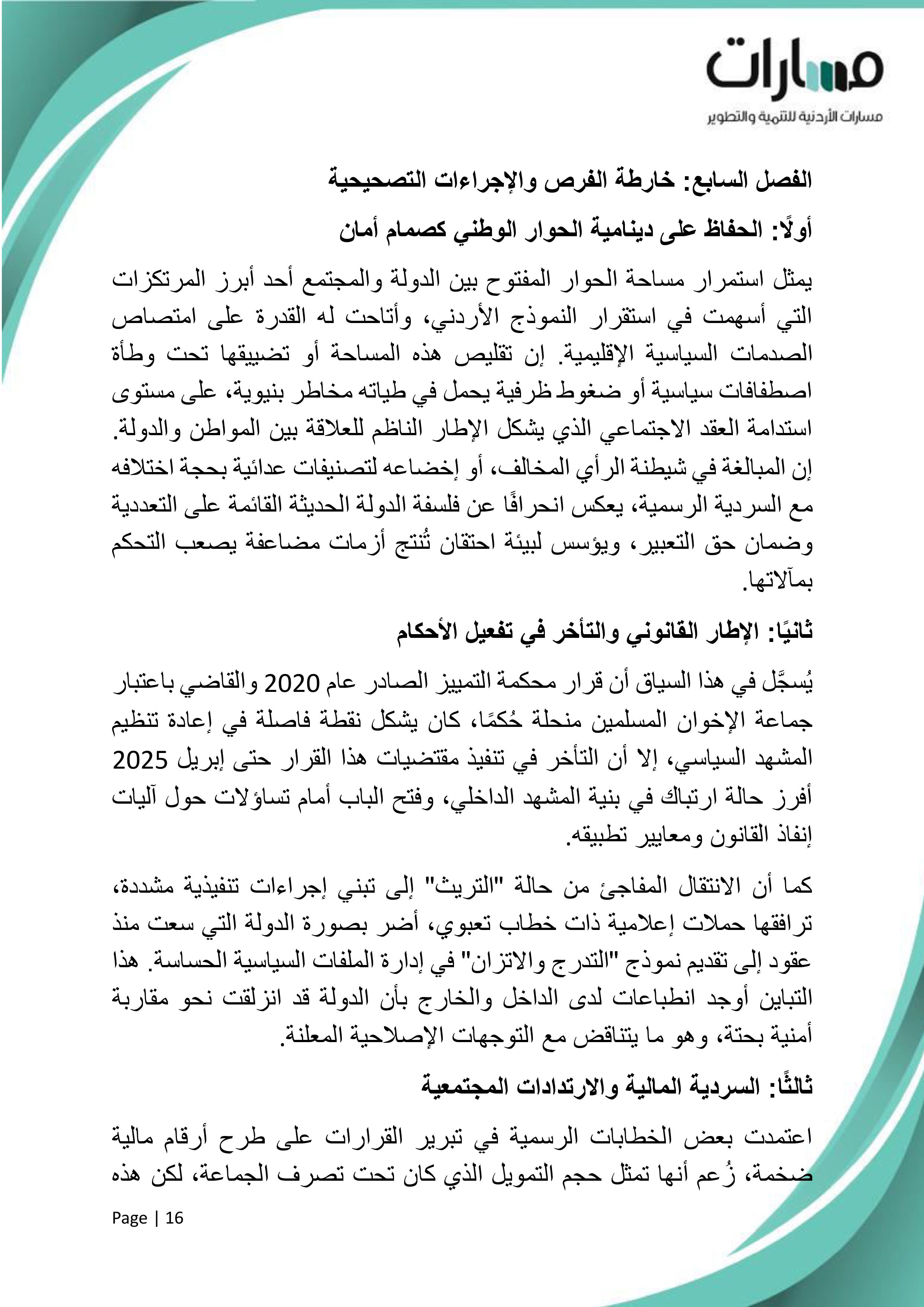 ورقة موقف بعنوان: "جماعة الإخوان المحظورة في الأردن بعد قرار الحل: سيناريوهات التكيف وخيارات الدولة"