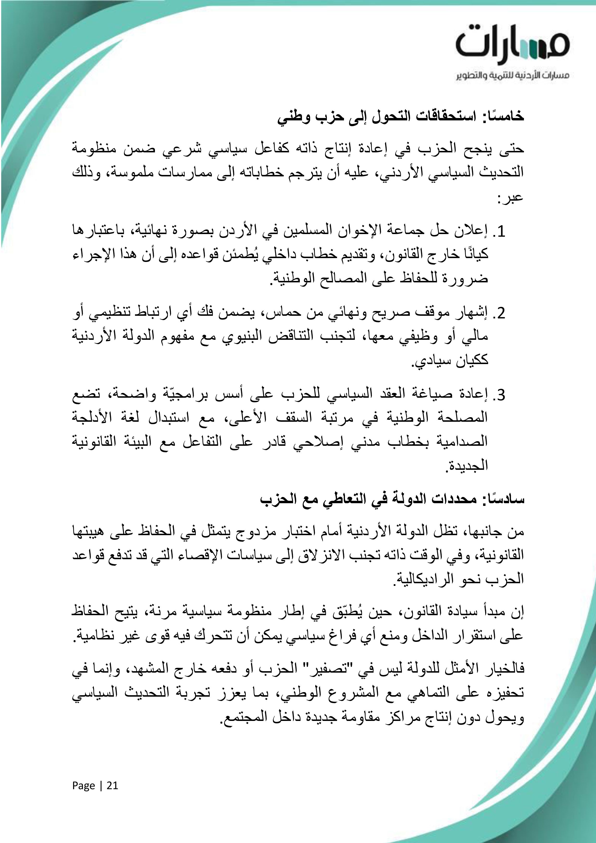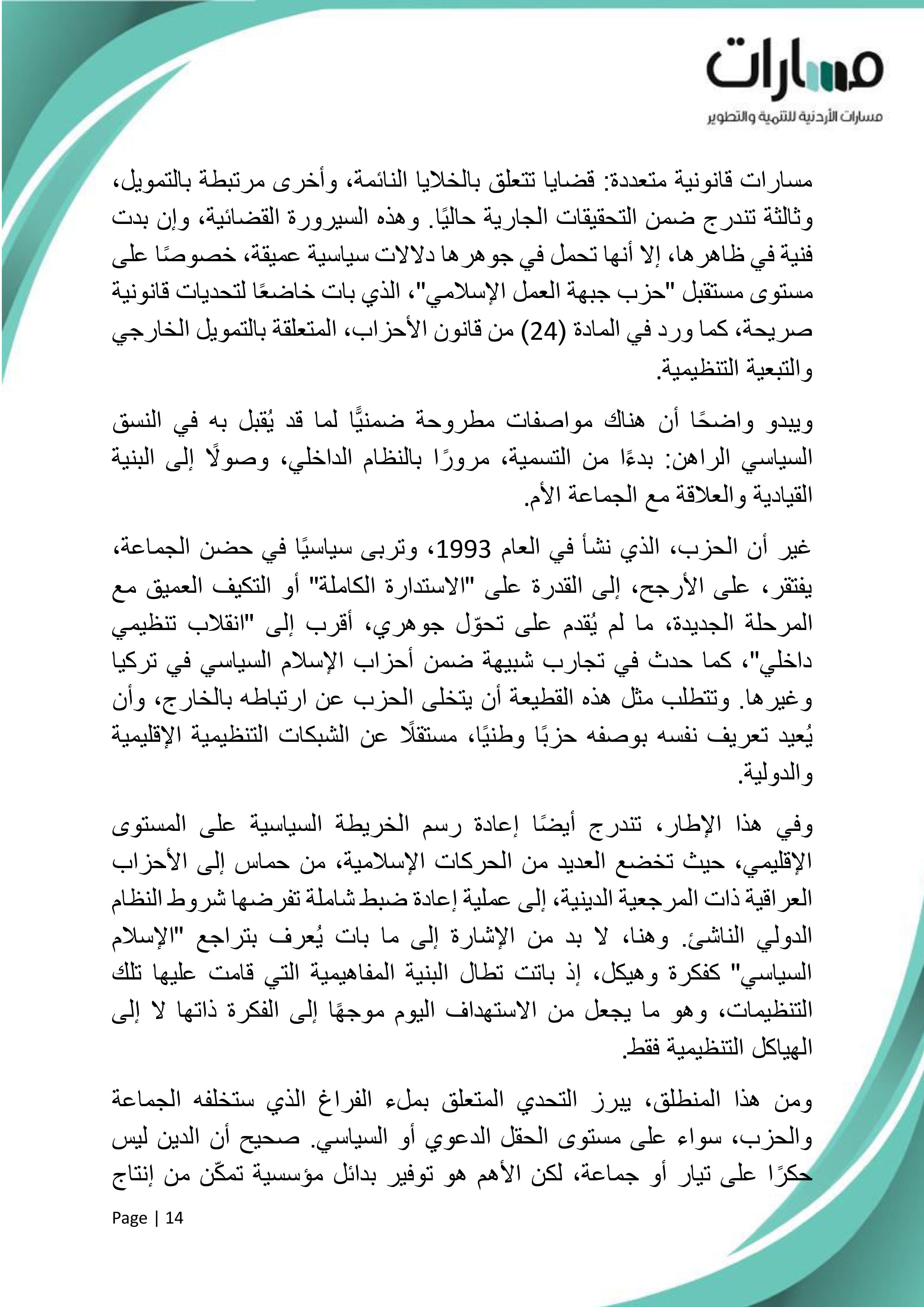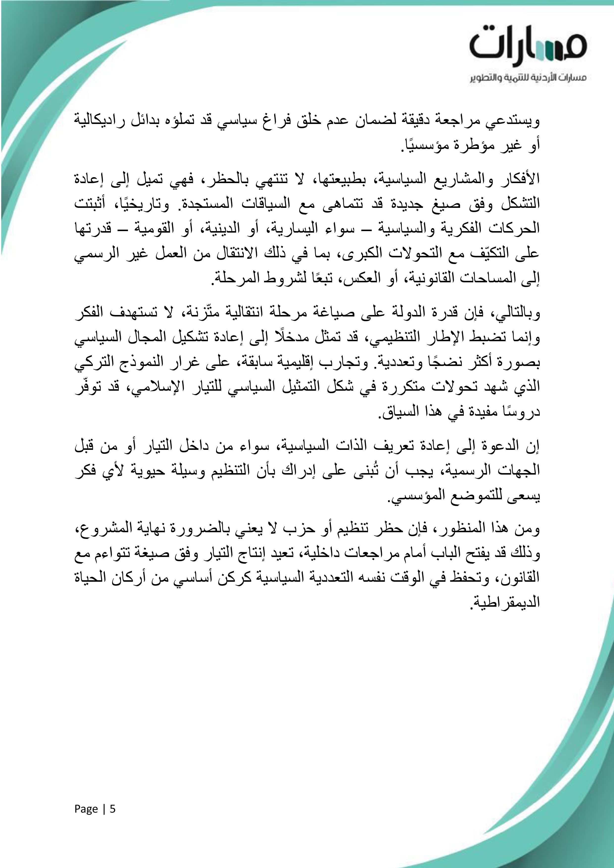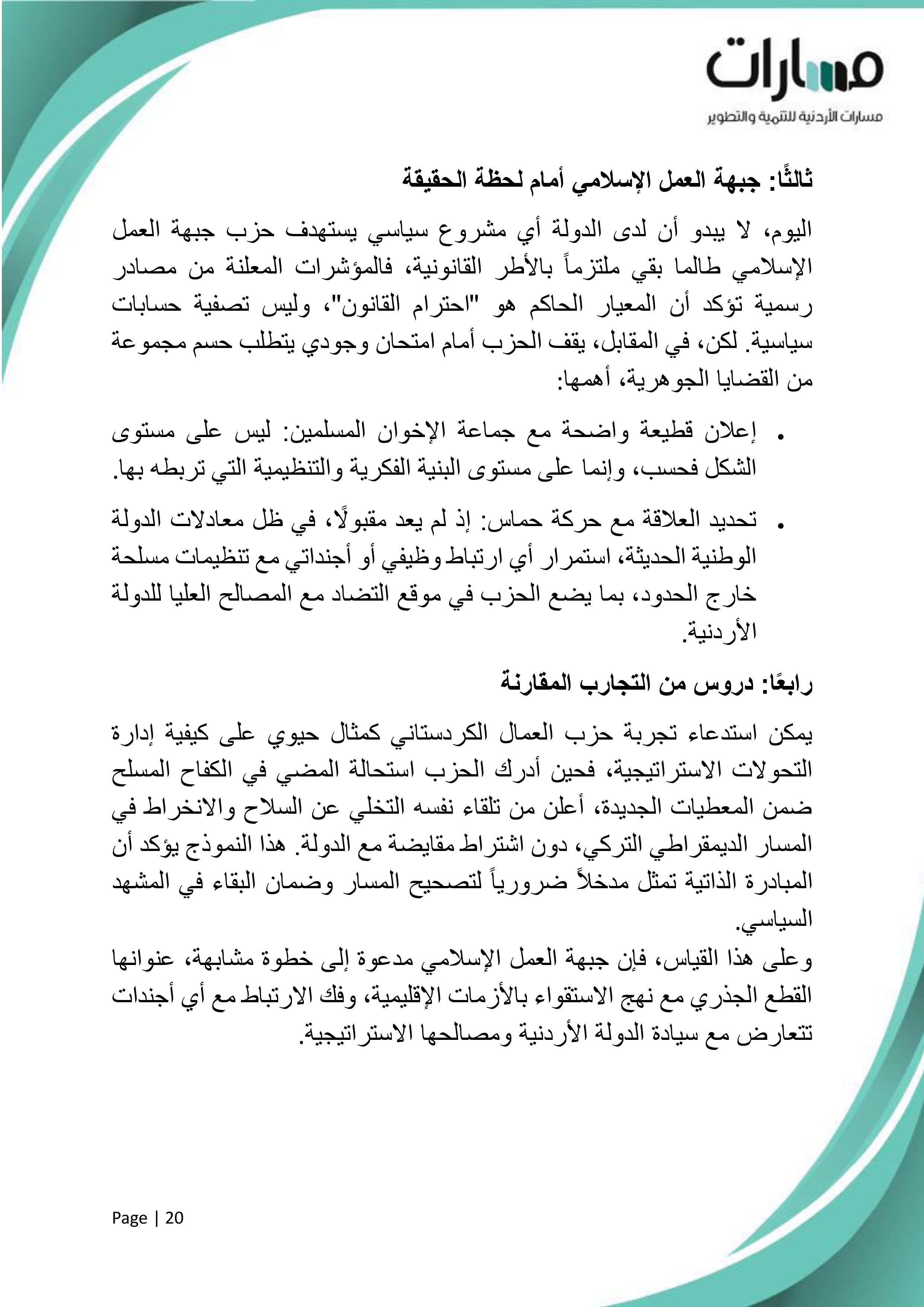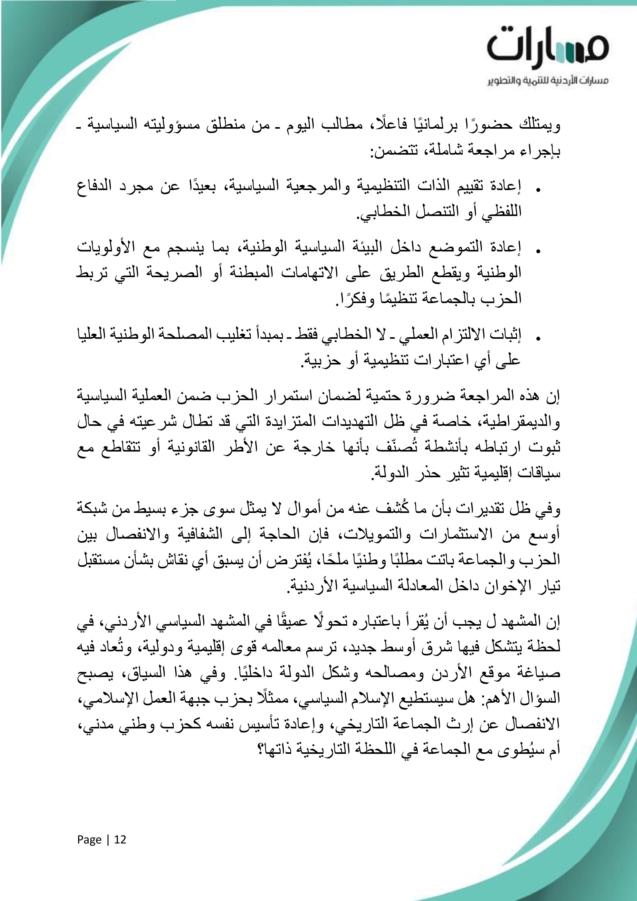 ورقة موقف بعنوان: "جماعة الإخوان المحظورة في الأردن بعد قرار الحل: سيناريوهات التكيف وخيارات الدولة"