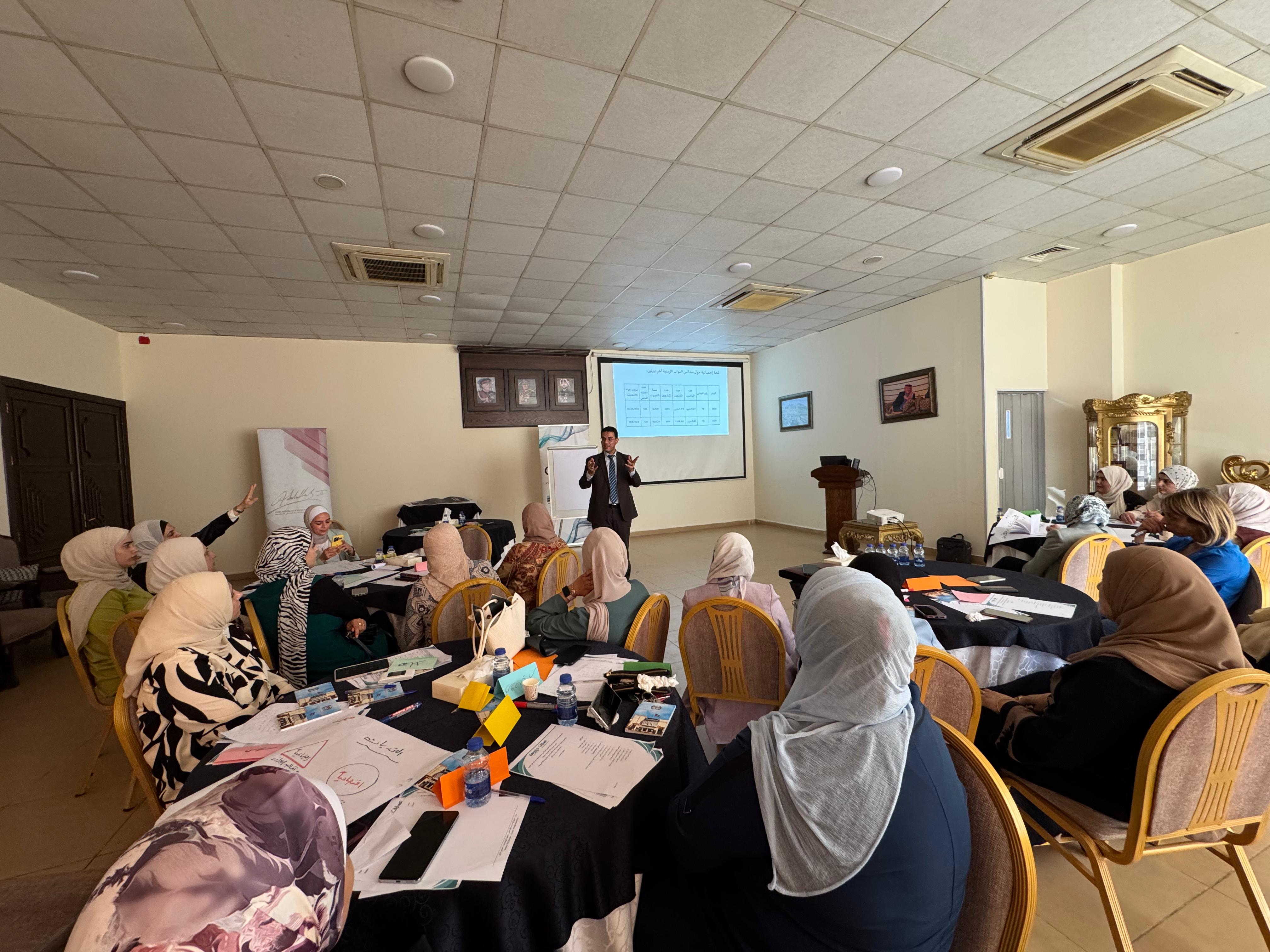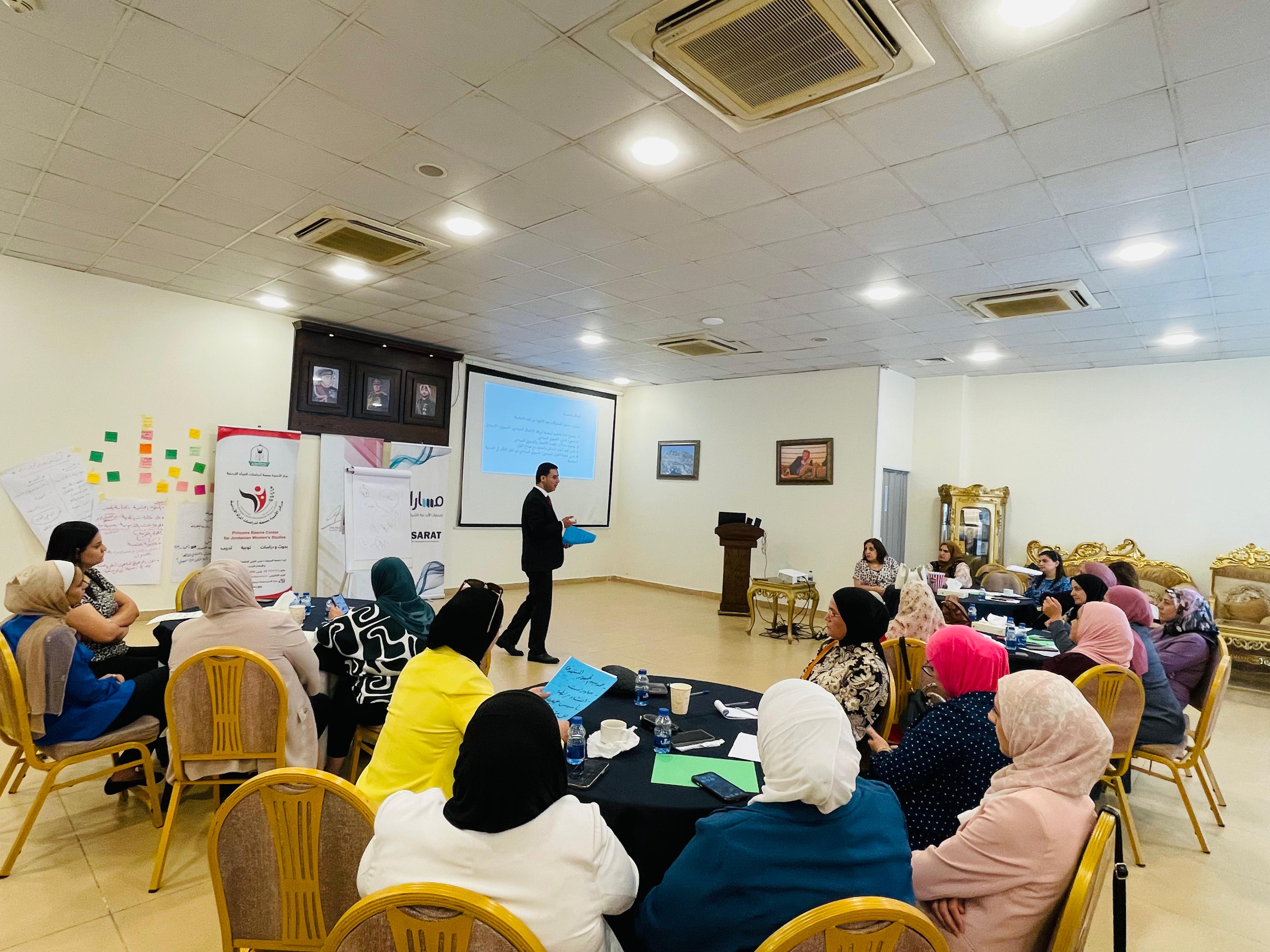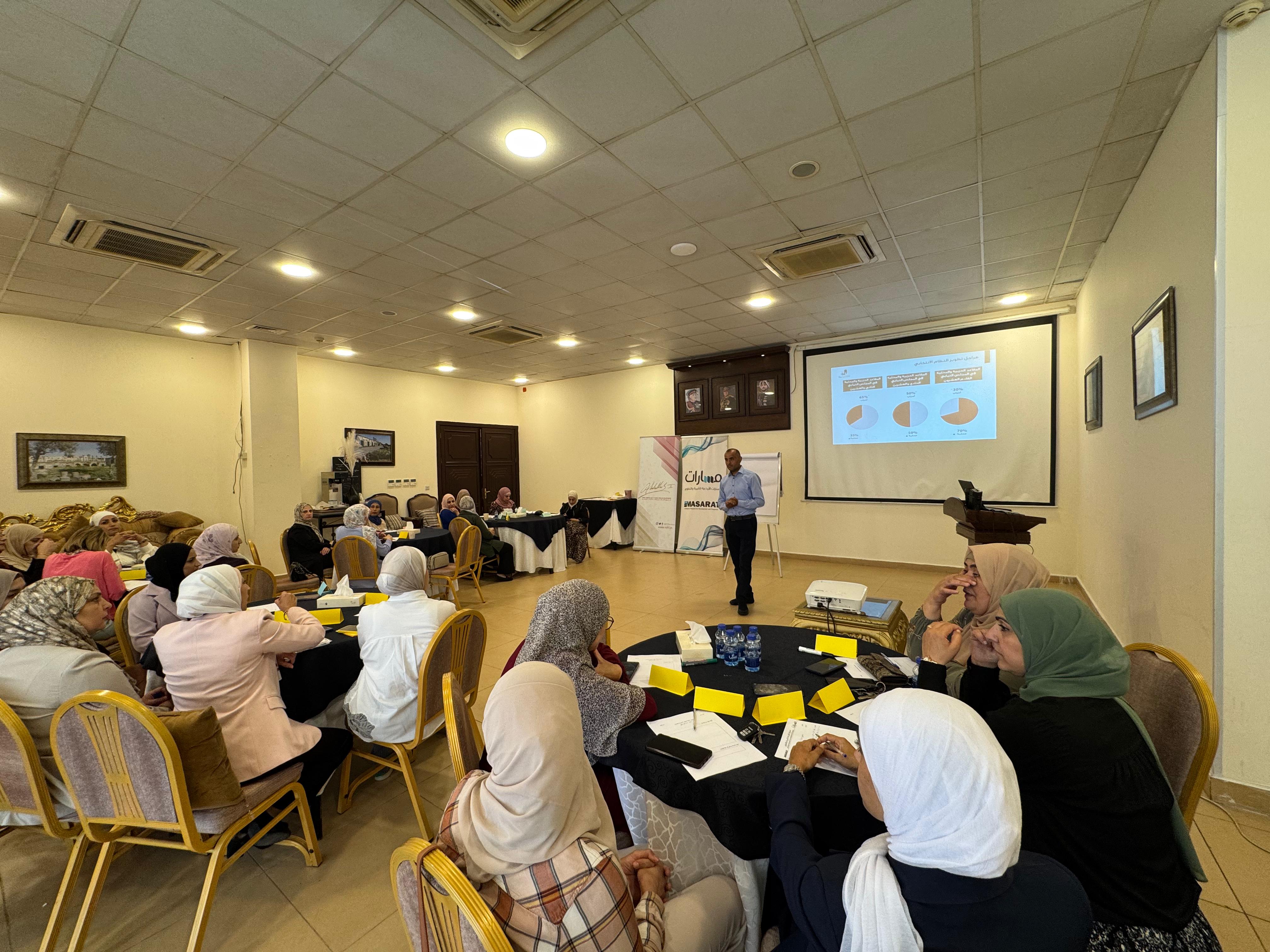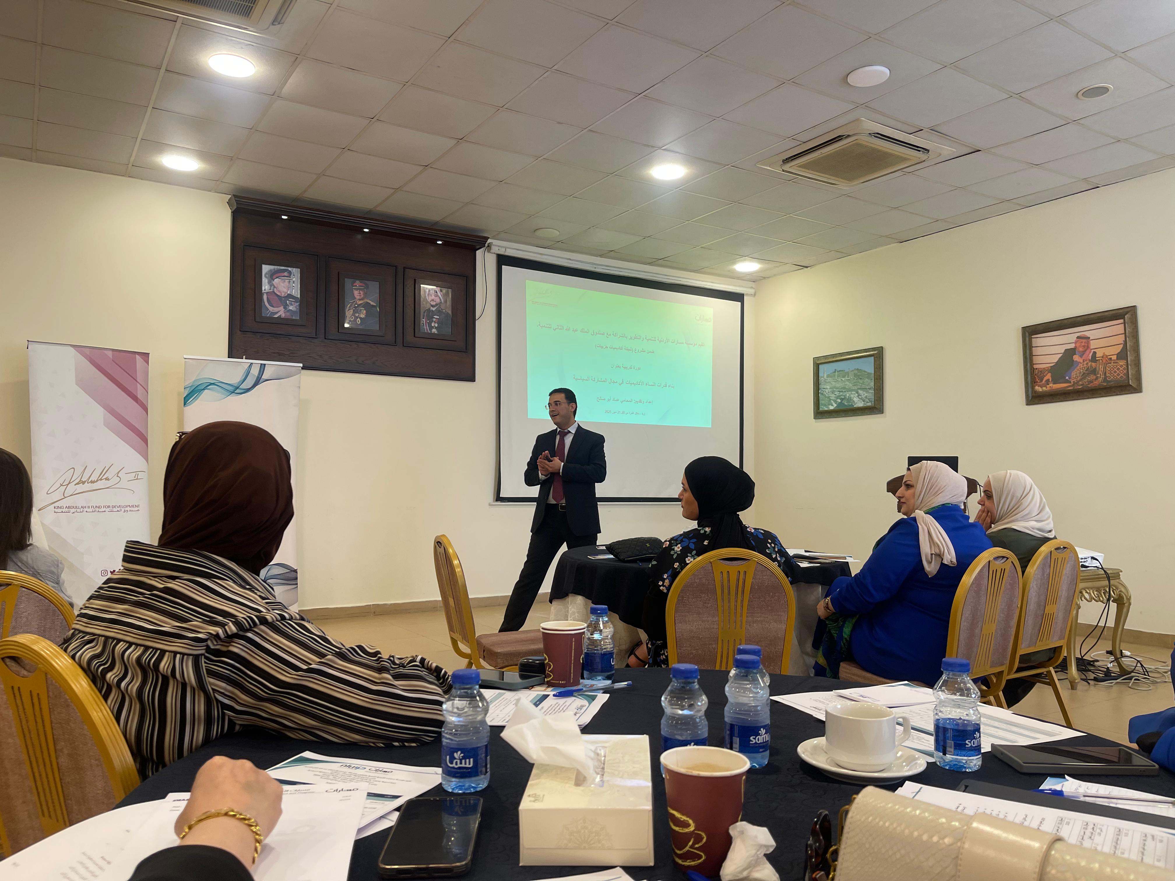نظمت مؤسسة مسارات الأردنية للتنمية والتطوير، بالتعاون مع صندوق الملك عبد الله للتنمية، ورشة تدريبية في محافظة إربد تحت عنوان "بناء قدرات النساء الأكاديميات في مجال المشاركة السياسية"، بمشاركة 50 سيدة من الأكاديميات والإداريات العاملات في جامعة اليرموك.